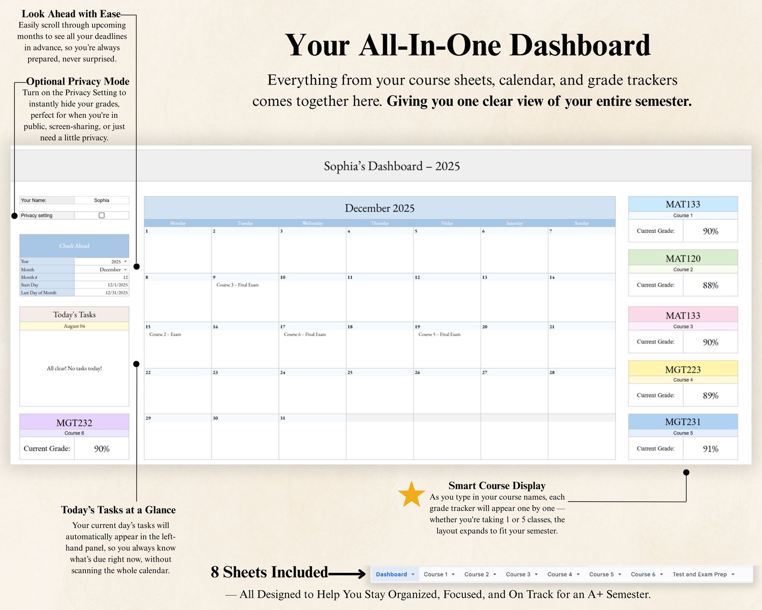 Track your grades, stay organized, and never miss a deadline — all semester long.
