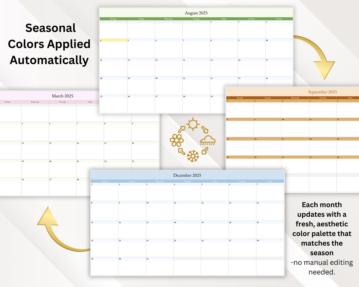 - Seasonal dashboard themes (Fall, Winter, Spring)